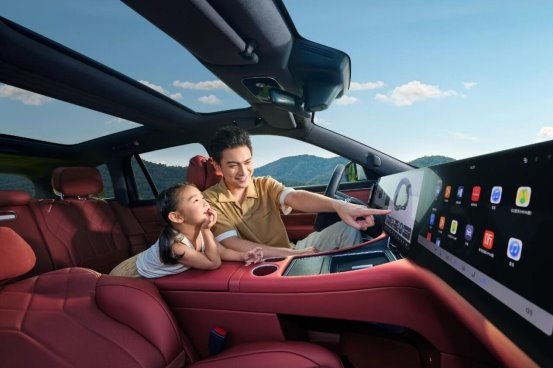 如果说细节配置提供了家庭出行的舒适底色,那么智能座舱与辅助驾驶系统则进一步呈现“新豪华”的科技内核。问界M8在满足出行功能之外,还以“更懂家庭需求”的体验取向,扮演起“智慧伙伴”的角色。车辆搭载鸿蒙座舱,通过全车满配超十屏实现更顺畅的跨屏联动与协同体验;同时配备华为乾崑智驾ADS 4辅助驾驶系统,并升级WEWA架构,依托30个高精度传感器构成的感知网络,实现全天候360°感知能力,为多场景行驶提供更从容的辅助支持。